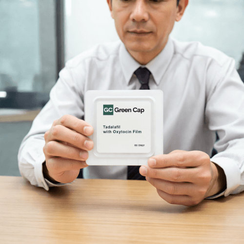 Tadalafil with Oxytocin film is placed under the tongue and dissolves in minutes for fast absorption.